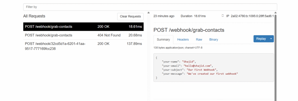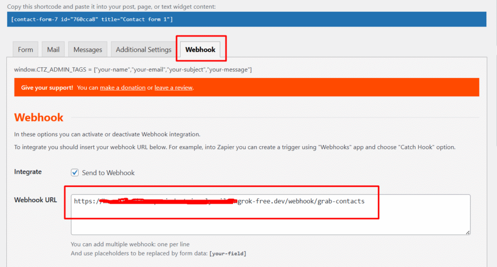 - WordPress contact form submission via Webhook.