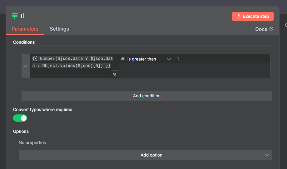 {{ Number($json.data ? $json.data : Object.values($json)[0]) }} > 1
