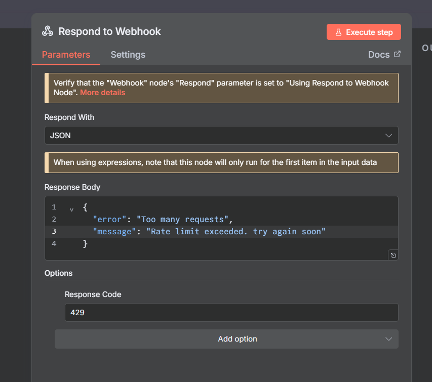 Node 4(a): Rate Limited Path (Responded to Webhook)